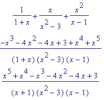 > 1/(1+x)+x/(x^2-3)+x^2/(x-1); normal(%); sort(%); |