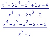 > (x^5-3*x^3-x^4+2*x+4)/(x^4+x-2*x^3-2); simplify(%); |