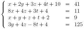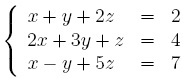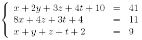 Systèmes d'équations : Il s'agit de la même commande, mais les différentes équations sont mises entre accolades, ainsi que les différentes variables :